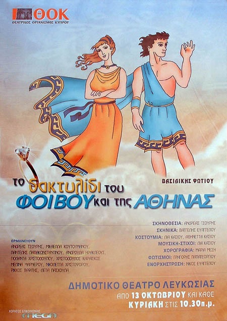 Βασιλικής Φωτίου ΤΟ ΔΑΚΤΥΛΙΔΙ ΤΟΥ ΦΟΙΒΟΥ ΚΑΙ ΤΗΣ ΑΘΗΝΑΣ 13 Οκτωβρίου 2002 Παιδική ΣκηνήΔημοτικό Θέατρο Λευκωσίας Ρεπερτόριο ΓλώσσαΕλληνικά Share on facebook Twitter Πρώτη παράσταση: 13 Οκτωβρίου 2002, Δημοτικό Θέατρο Λευκωσίας. 1/4 2/4 3/4 4/4 ΤΑΥΤΟΤΗΤΑ ΠΑΡΑΣΤΑΣΗΣ Συντελεστές Ανδρέας Τσουρής Σκηνοθεσία Βαγγέλης Ευαγγέλου Σκηνικά Λία Κάσιου Κοστούμια, Μουσική, Στίχοι Αθηνά Κάσιου Κοστούμια Μαρία Μέση Αγγελίδου Χορογραφία Γρηγόρης Παπαγεωργίου Φωτισμοί Νίκος Ευαγγέλου Ενορχήστρωση Διανομή Ανδρέας Τσουρής Φοίβος Μικαέλλα Κουτουμάνου Αθηνά Παντελής Παπακωνσταντίνου Θεοκλής Αντρούλα Ηρακλέους Πυθία Γιολάντα Χριστοδούλου Θεαδρομη Ρίκκος Παφίτης Ξανθίας Μελίνα Μαρνέρου Μελπομένη Νικολέττα Χριστοφόρου Τερψιχόρη Χριστόδουλος Καραΐσκος Τιμοκράτης/Πλούτος Λέτα Πασχούλα Ευλαλία