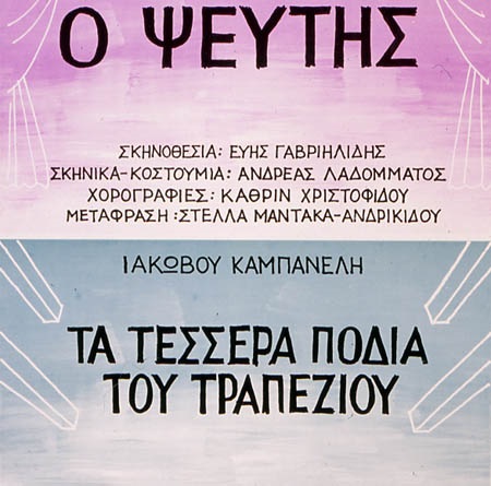 Ιάκωβου Καμπανέλλη ΤΑ ΤΕΣΣΕΡΑ ΠΟΔΙΑ ΤΟΥ ΤΡΑΠΕΖΙΟΥ 30 Δεκεμβρίου 1981 Κεντρική ΣκηνήΔημοτικό Θέατρο Λευκωσίας Ρεπερτόριο ΓλώσσαΕλληνικά Share on facebook Twitter Πρώτη Παράσταση: 30 Δεκεμβρίου 1981, Δημοτικό Θέατρο Λευκωσίας. 1/1 ΤΑΥΤΟΤΗΤΑ ΠΑΡΑΣΤΑΣΗΣ Συντελεστές Ανδρέας Μαραγκός Σκηνοθεσία Άντης Παρτζίλης Σκηνικά-Κοστούμια Διανομή Δέσποινα Μπεμπεδέλη Αλίκη Φαίδρος Στασίνος Κώστας Ανδρέας Μαραγκός Τώνης Τζένη Γαϊτανοπούλου Μαίρη Φλωρεντία Δημητρίου Ειρήνη Νεόφυτος Νεοφύτου Γιώργος Κυριάκος Ευθυμίου Μάνος Λένια Σορόκου Θεία Φιλής Καραβιώτης Πατέρας Έλλη Κυριακίδου Νοσοκόμα