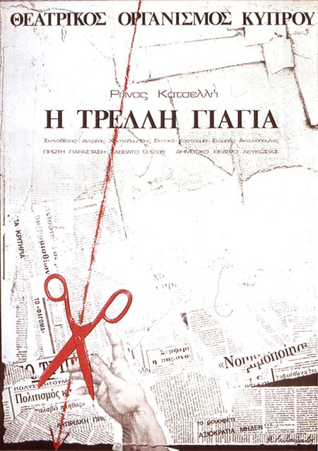Ρήνας Κατσελλή ΤΡΕΛΛΗ ΓΙΑΓΙΑ 13 Δεκεμβρίου 1986 Β΄ΣκηνήΔημοτικό Θέατρο Λευκωσίας Ρεπερτόριο ΓλώσσαΕλληνικά Share on facebook Twitter Πρώτη παράσταση: 13 Δεκεμβρίου 1986, Δημοτικό Θέατρο Λευκωσίας 1/4 2/4 3/4 4/4 ΤΑΥΤΟΤΗΤΑ ΠΑΡΑΣΤΑΣΗΣ Συντελεστές Αντρέας Χριστοδουλίδης Σκηνοθεσία Σταύρος Αντωνόπουλος Σκηνικά-Κοστούμια Διανομή Λένια Σορόκου Λίτσα Χαριλάου Ευτύχιος Πουλλαΐδης Άνθης (Κλεάνθης) Άλκηστις Παυλίδου Μαρία Φυλαχτού Φαίδρος Στασίνος Νίκος Ιασωνίδης Νεόφυτος Νεοφύτου Κύπρος Επαινετός, υδραυλικός Φλωρεντία Δημητρίου Μαρία Φυλαχτού, γιαγιά Σπύρος Σταυρινίδης Παναής Φυλαχτού, θείος
