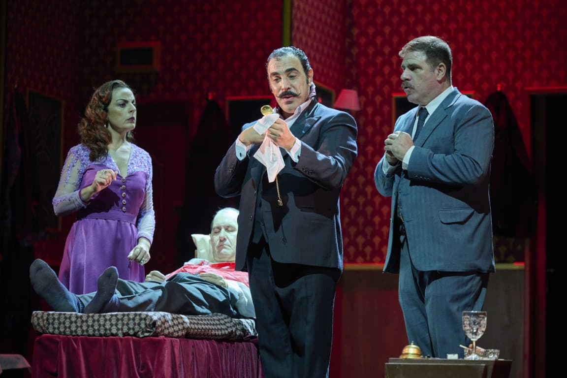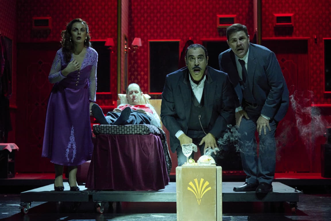 Μια σκοτεινή, γριφώδης και παράλληλα κωμική σκηνική σύνθεση, που αναδεικνύει τη διαχρονική αμφισημία ανάμεσα στην αλήθεια και το ψέμα, ανάμεσα στην παγίδα του φαίνεσθαι και την αποκάλυψη του είναι. Στους ρόλους του θύματος, των πολλαπλών υπόπτων και του μοναδικού ενόχου, δεκατρείς εξαιρετικοί ηθοποιοί, γνωστοί πρωταγωνιστές αλλά και νέοι. Τον θρυλικό Πουαρό ερμηνεύει ο Νεοκλής Νεοκλέους.