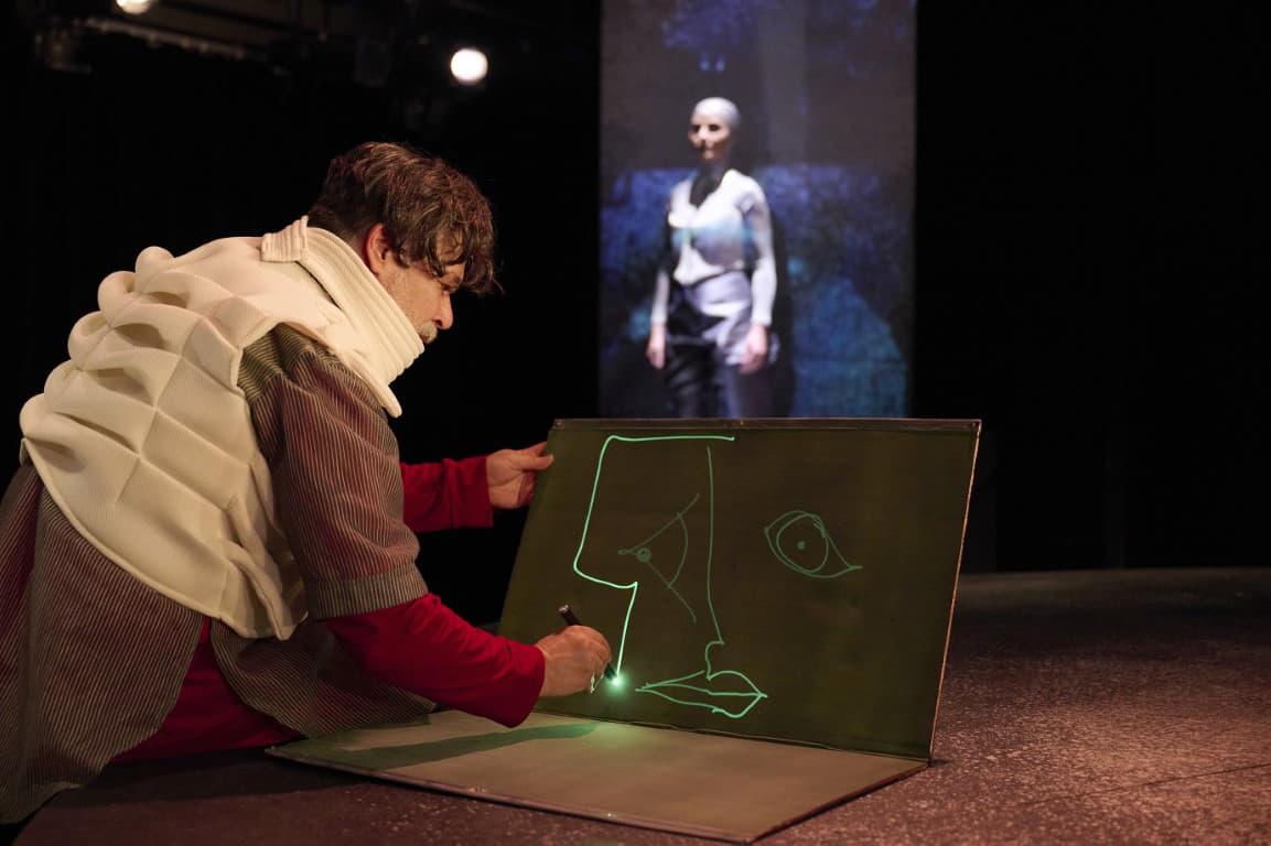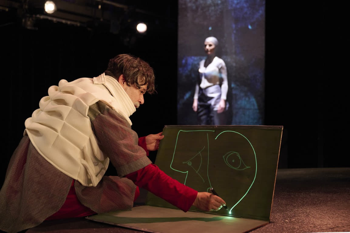 Η σταδιακή μετάβαση από τον άνθρωπο στη μηχανή και η υπόνοια μιας μετα-ανθρώπινης συνθήκης εγγράφονται στο φαντασιακό του θεατή, ο οποίος δεν καλείται απλώς να παρακολουθήσει, αλλά να βιώσει μια εμπειρία που αμφισβητεί τα όρια της ελευθερίας, της δημιουργίας και της ίδιας της ζωής. Στην εποχή της Τεχνητής Νοημοσύνης, όπου η μηχανή διεκδικεί τη θέση του ανθρώπου, η παράσταση φωτίζει τη λεπτή γραμμή ανάμεσα στην εξουσία και την αντίσταση, στην προσωπική ευθύνη, στον δημιουργό και το δημιούργημά του.