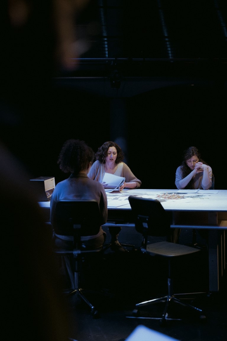 Με τη συνοδεία ενός μουσικού επί σκηνής και, επιπλέον, με ζωντανή κινηματογράφηση, βιντεοπροβολές και σκηνογραφικές νύξεις, η σκηνοθέτρια κατευθύνει τις αναγνώσεις των τεσσάρων ηθοποιών, προτείνοντας μια εμπειρία καθαρής ακρόασης του κειμένου, που αναδεικνύει τόσο τη λογοτεχνική αξία των δύο έργων όσο και το άνοιγμά τους στο παρόν.