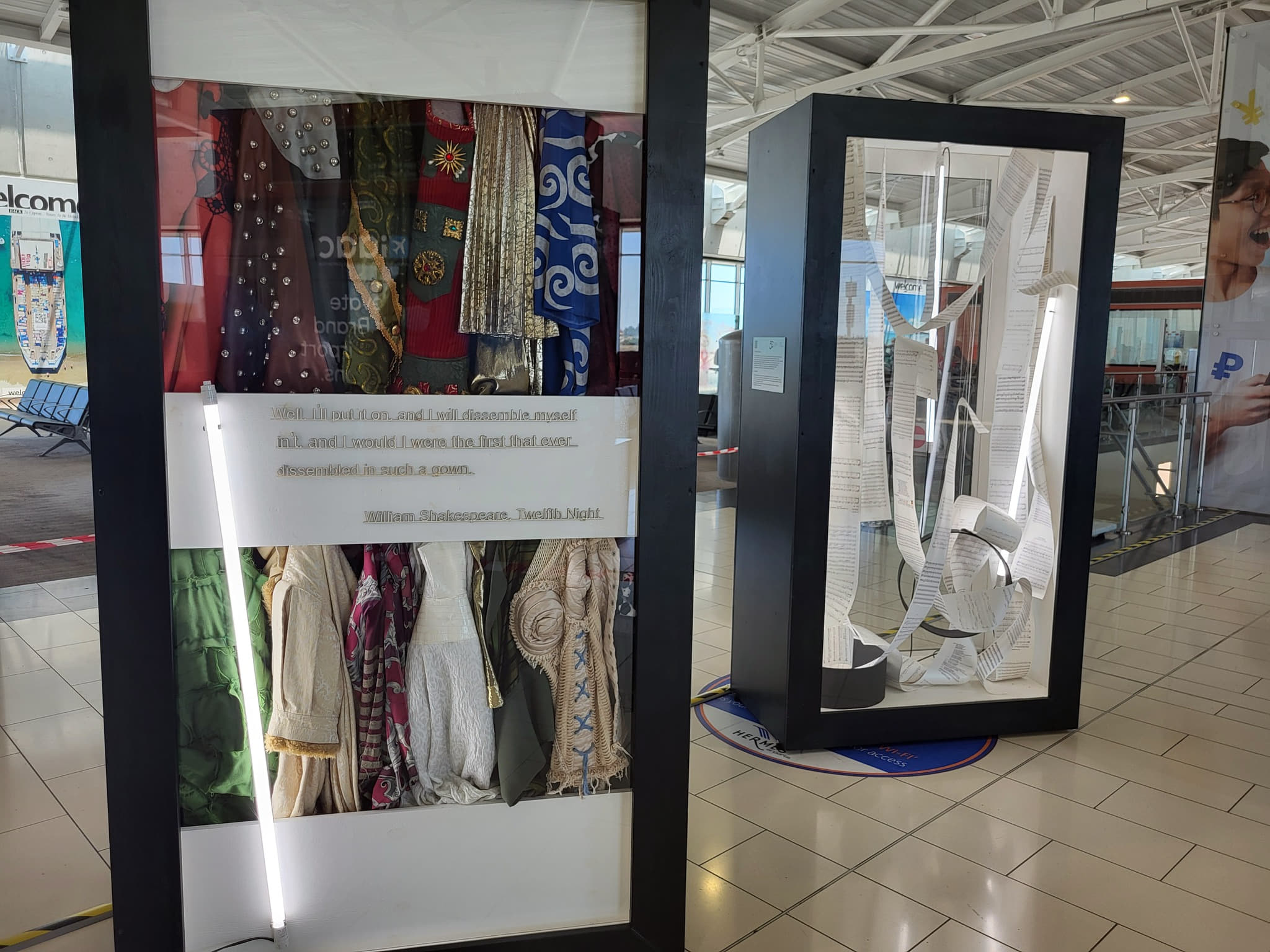 Hermes Airports hosts an anniversary exhibition at Larnaka Airport on the occasion of the 50 years since the establishment of the Cyprus Theatre Organisation. Ten displays have been placed at the Departures Area of Larnaka Airport, exhibiting the valuable material by THOC, to the thousands of passengers travelling daily through the airport. The art exhibition includes theatrical costume props, reviews and play posters, 3D models for set designs and other props, which are an integral part of the history of Cyprus theatre.