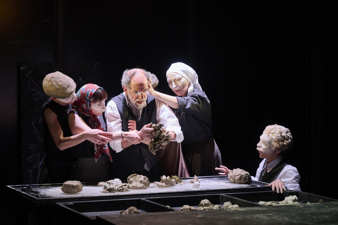 Director Fotis Nikolaou approaches A Thousand Hands as a stage confrontation of the creator with his own self: the Apollonian Chalepas encounters the Dionysian Satyr. It is precisely there that present and future, madness and creation, truth and illusion become one. The stage is transformed into a space of matter and memory, where clay and mask become body, imprint, wound, and prayer. The boundaries between creator and creation blur. Inspiration resembles a curse, and art becomes a final gesture of resistance against decay.